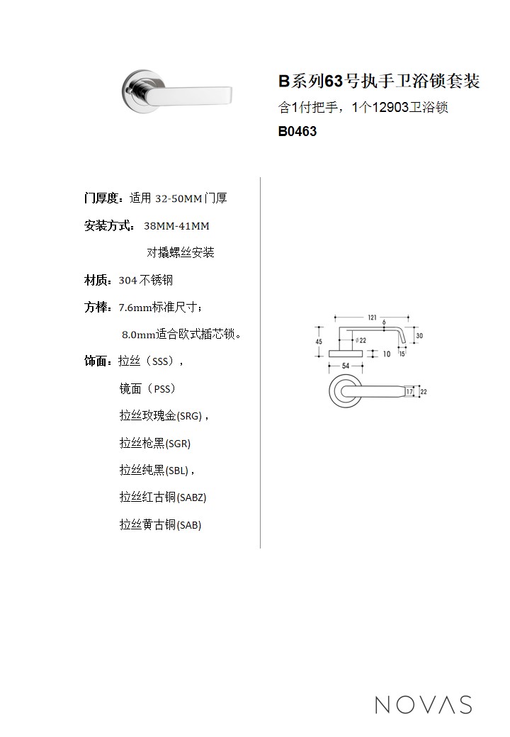 B系列產品63號執手衛生間鎖服裝