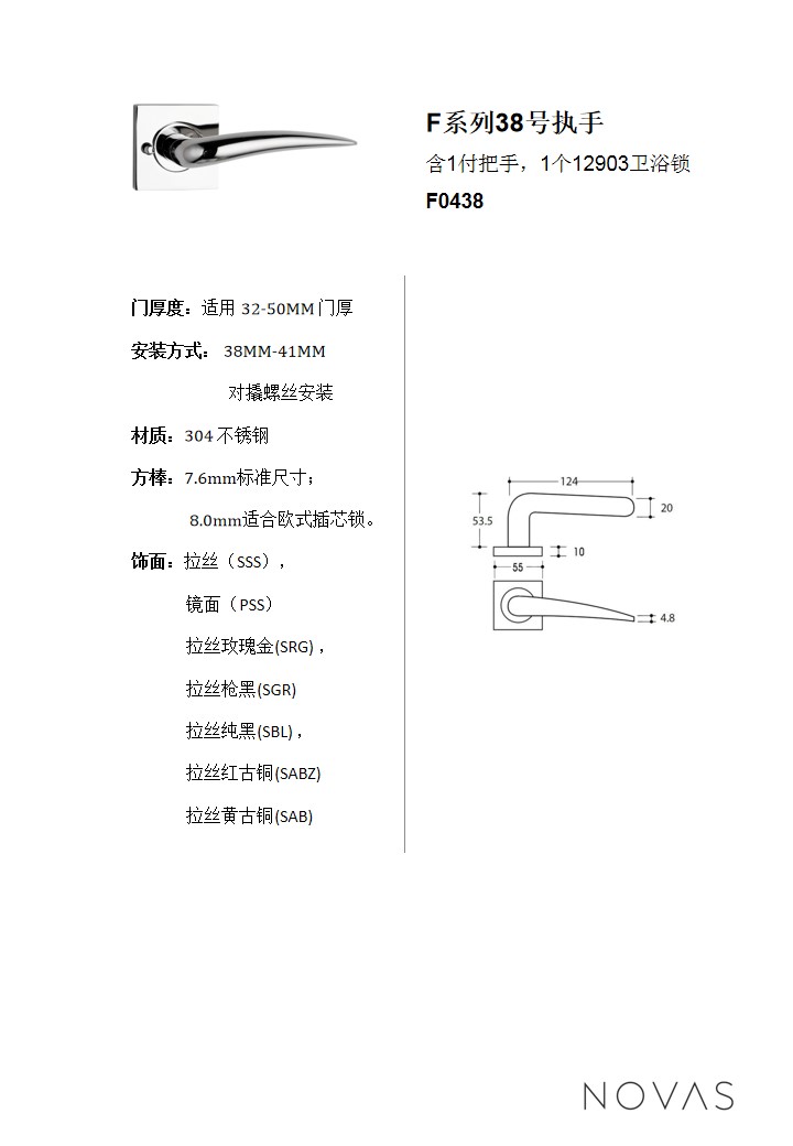 B系列38號執手衛浴鎖套裝