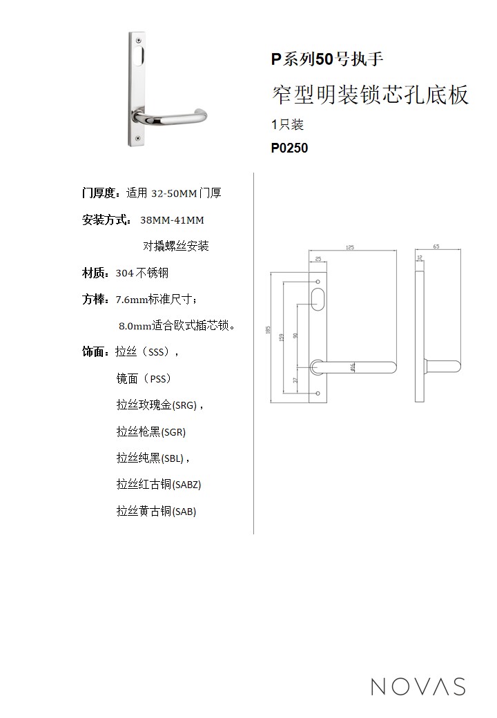 窄型明裝葉片鎖孔底板1只裝 P0250