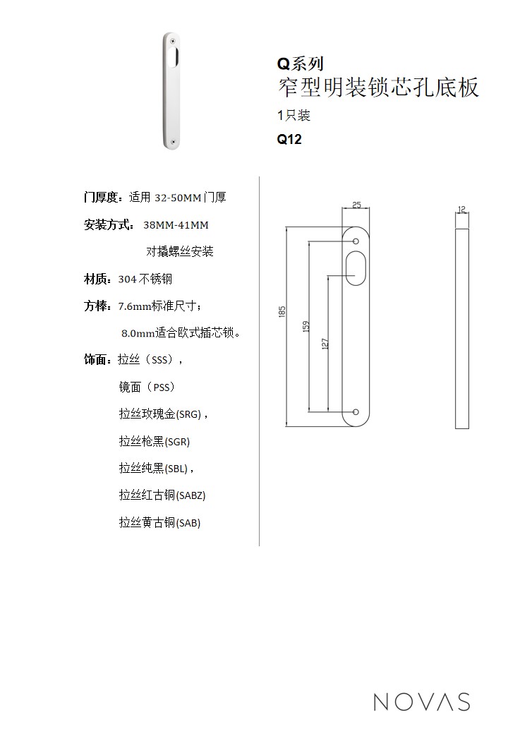 窄型明裝防盜鎖芯孔底板 1只裝 Q12