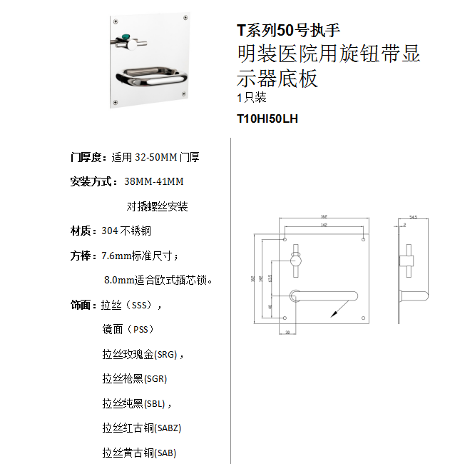T系列50號執手 明裝病院用旋鈕帶顯現器底板