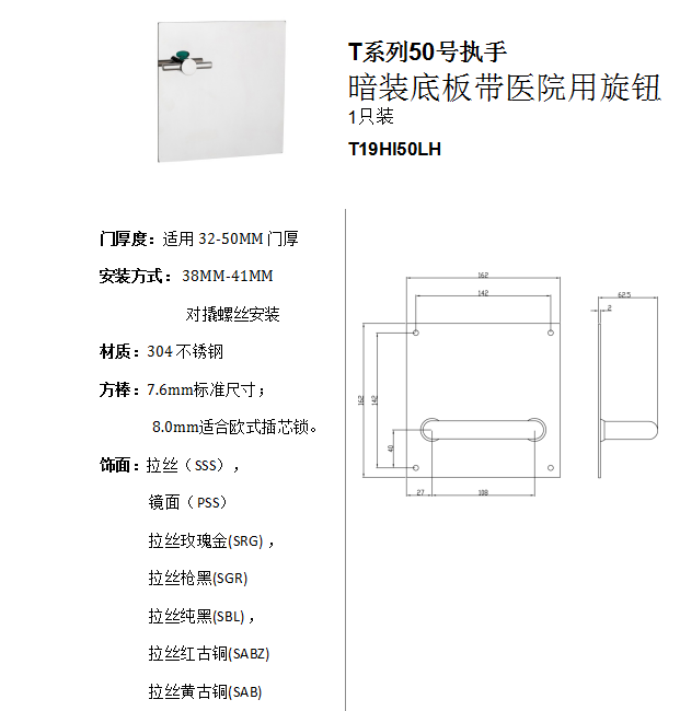 T系列50號執手 暗裝底板帶病院用旋鈕