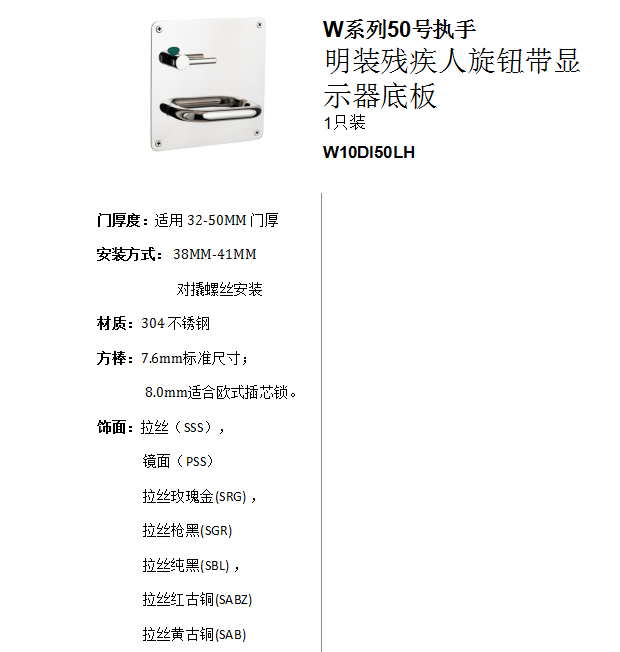 W系列50號執手 明裝殘疾人旋鈕帶顯現器底板