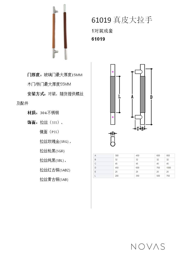 > 61019 高級真皮大門把手